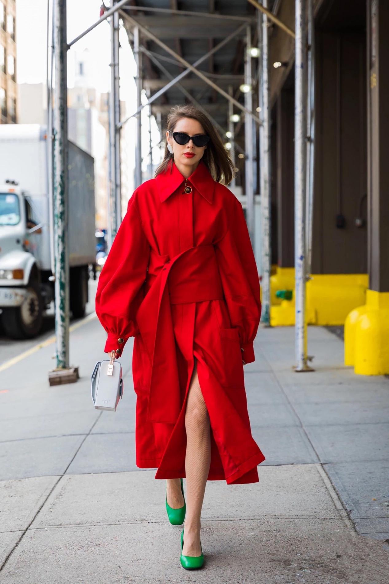 红配绿丑到哭,这是我们从小最先受到启蒙的颜色搭配,很少人会触及到这种搭配,红和绿极大的色差造成我们视觉上冲击,红配绿怎么搭配呢?纯正的红色大衣搭配绿色高跟鞋都选用纯净的颜色减少视觉的冲击用白色手拿包减低色泽整体着装和谐大气。