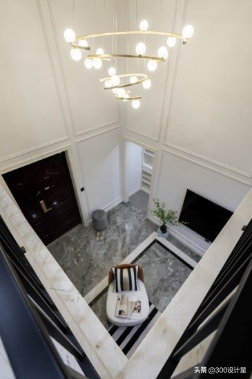 入户区域挑空,增加了空气的流通,同时也打破了空间的压抑感,挑空5米层高,尽显大气。