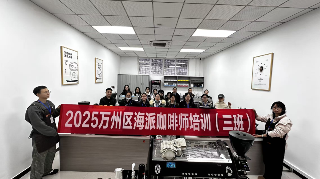 ▲“2025海派咖啡师培训第三班”培训现场 精准对接:沪万协作的创新服务模式 ▲学员们学习咖啡培训教材 ▲老师现场传授咖啡机的运用 精准施策,创新模式破解就业难题 ▲学员练习意式咖啡打奶泡的技巧 ▲学员制作意式咖啡 ▲老师现场指导意式咖啡拉花技巧 上海与万州聚焦就业难题精准发力,在深入调研万州就业市场特点和青年大学生实际需求的基础上,共同打造了“技能培训+运营管理+推荐就业”的创新服务模式。此次海派咖啡师培训正是这一模式的典型范例。本期课程不仅涵盖咖啡豆鉴别、萃取技术、拉花艺术等核心专业技能,更系统融入了上海特色的“海派”服务理念、店面运营管理、客户体验优化及成本控制等实战知识。此外,结业的学员可获得与沪万两地合作咖啡企业的优先就业推荐,实现培训与就业的无缝衔接。一位学员感慨地说:“我一直梦想着能有一份自己热爱的工作,这次培训让我看到了希望。我会珍惜这个机会,努力学习,提升自己的技能,争取早日实现自己的梦想。” 未来展望:技能培训引领就业新方向 ▲“2025万州区海派咖啡师培训”三班的学员与导师合影