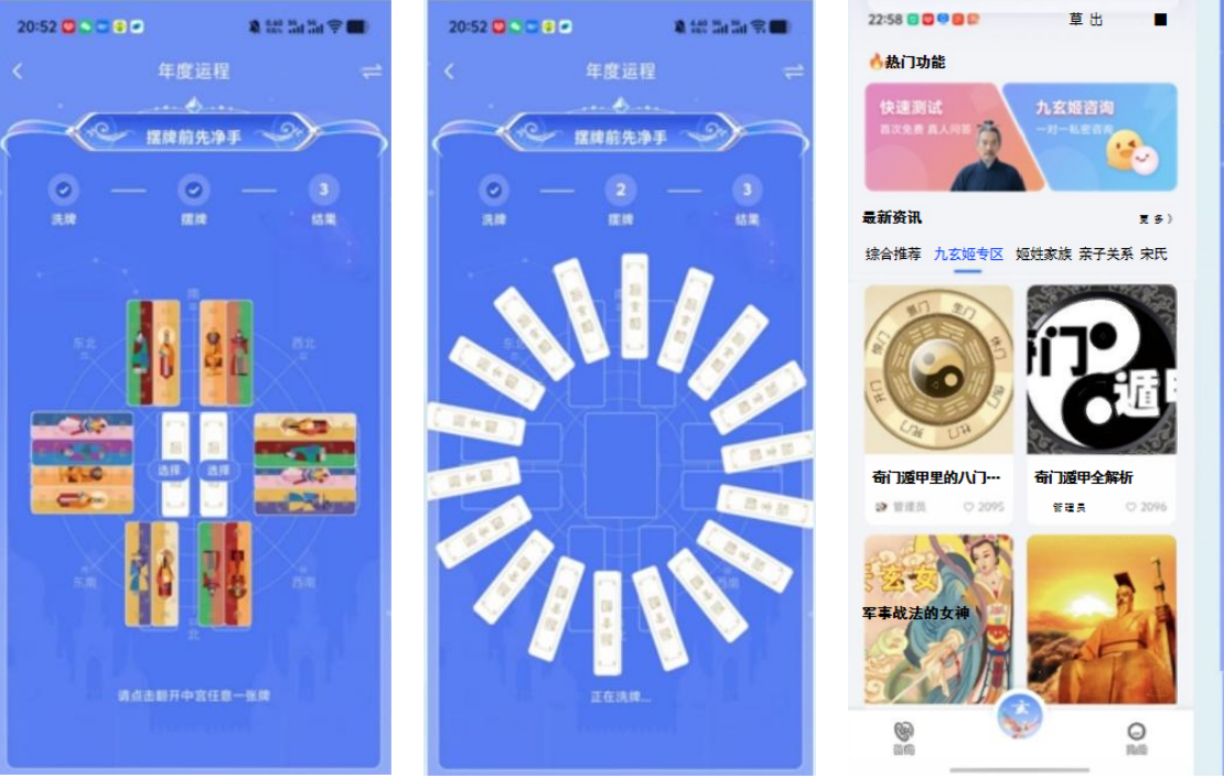 个人成长与心理疏导:小程序基于九玄姬纸牌体系,融合心理学原理,能帮助用户进行自我认知、情绪管理,并为人生规划、职业选择等提供趋势分析与决策参考。